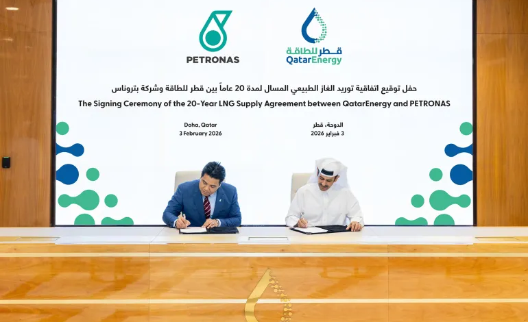وقّعت قطر للطاقة وبتروناس الماليزية اتفاقية بيع وشراء طويلة الأجل لتوريد الغاز الطبيعي المسال لمدة 20 عامًا، بكمية تبلغ مليوني طن سنويًا، على أن تبدأ الإمدادات اعتبارًا من عام 2028، في خطوة استراتيجية تعزز حضور الدوحة في الأسواق الآسيوية وتدعم أمن الطاقة في ماليزيا.