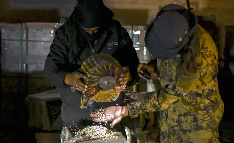 وبحسب المعاينات الأولية، لم يكن الموقع مجرد مخزن أو نقطة تهريب، بل خط إنتاج صناعي متكامل يضم مكابس أقراص وخلاطات ضخمة ومواد خام، مع قدرة إنتاجية تصل إلى نحو 100 ألف حبة في الساعة، ومكونات تكفي لتصنيع 700 مليون حبة، بينما قدرت قيمة المعدات بنحو 3 ملايين دولار.
